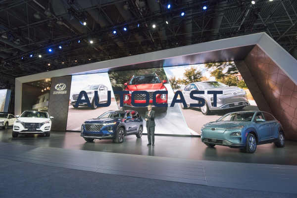 2018 뉴욕 국제 오토쇼. (왼쪽부터) 투싼 페이스리프트, 신형 싼타페, 코나 일렉트릭
