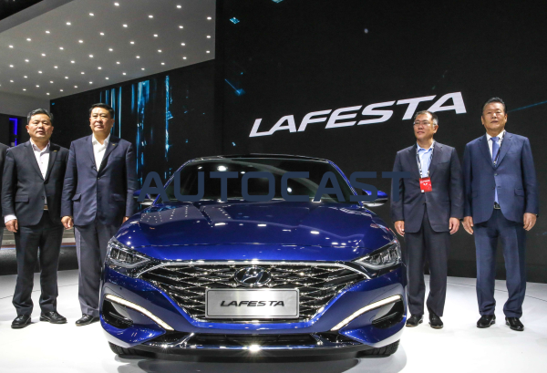 현대자동차가 25일 중국 신국제전람중심에서 열린 ‘2018 베이징모터쇼’에서 중국 전략 차종 ‘라페스타(Lafesta)’를 세계 최초로 선보였다.