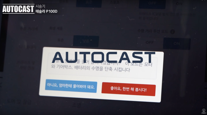 테슬라가 기존의 차와 가장 큰 차이는 고성능 모터의 가속감이다. 좀 달린다는 내연기관차들과 그 느낌이 완전히 다르다. 제로백 2.7초를 경험할 수 있다는 루디크러스(Ludicrous) 모드에 두고 가속 페달을 꾹 밟는 순간 모델 S P100D는 한 치의 머뭇거림 없이 훅 튀어나간다. 잠시 머리에 피가 뒤로 쏠리는 느낌이 들면서 현기증을 느낀다. 엔진음이나 배기음, 변속감이 전혀 없는 채로 미끄러지듯 가속하니 자동차에 탄 것 맞나 하는 의심까지 든다.