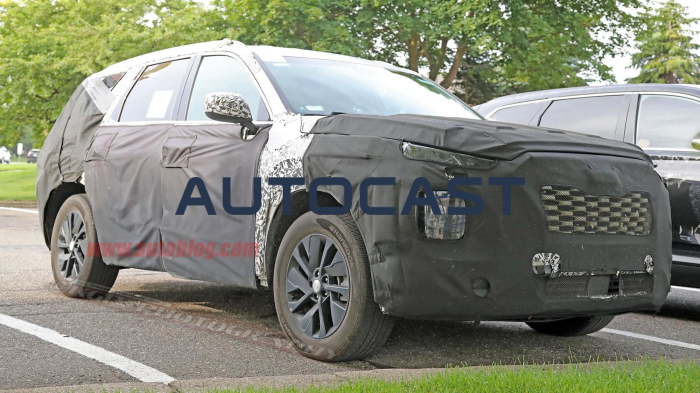 공개된 실내 사진에 따르면 돌출형 디스플레이와 스티어링 휠 디자인 등은 싼타페와 비슷하지만 전반적으로 싼타페보다 고급감은 높아질 것으로 보인다. 공조 장치 조절 버튼이나 다이얼의 소재, 배치 등은 수소차 넥쏘나 제네시스의 실내 디자인을 연상케 한다. 특히 컵홀더 왼쪽 자리가 비어 있는 것으로 보아 기어레버 대신 전자식 변속 버튼이 적용될 예정이다. @오토블로그(autoblog) @오토블로그(autoblog)