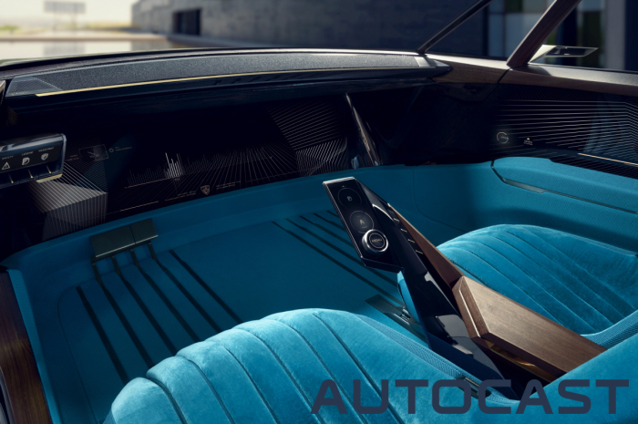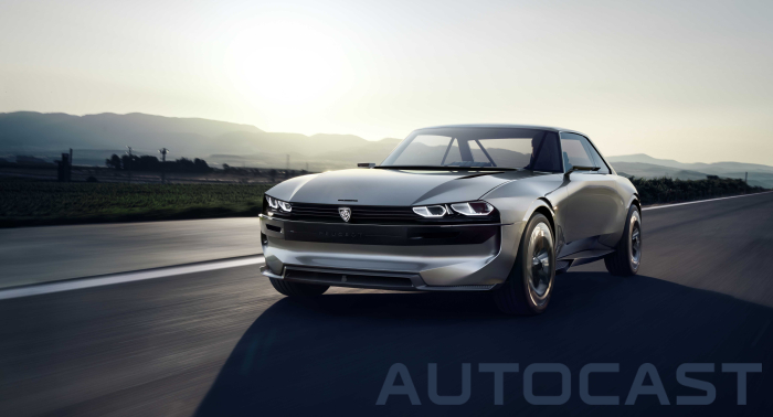 푸조 e-레전드 콘셉트는 푸조의 기술과 비전, 브랜드 헤리티지를 조화시켜 만든 순수전기자율주행차다. 푸조 504 쿠페에서 영감을 받아 재해석했다. 504 쿠페의 스타일을 계승해 광대한 유리면으로 나뉘어진 전통적인 3박스 쿠페 형태로 만들었다. 운전자는 대시보드를 가로지르는 49인치 대형 컬러 스크린, 선바이저의 12인치 스크린, 주요 장치를 조작할 수 있는 센터 콘솔의 6인치 터치 스크린 등을 통해 자율 주행 모드 및 수동 주행 모드에 따라 영화나 게임 등 미디어 콘텐츠를 이용 할 수 있다.