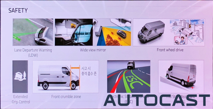 르노 마스터는 국내 화물차 최초로 차선이탈 보조시스템을 기본으로 장착했고 국내에 상용차가 에어백을 기본 장착한지 불과 2~3년 밖에 되지 않는데 마스터에는 에어백을 포함한 안전사양을 대거 추가했다고 밝혔다.