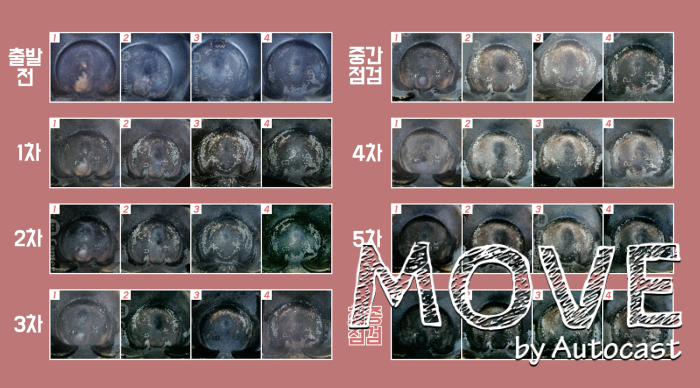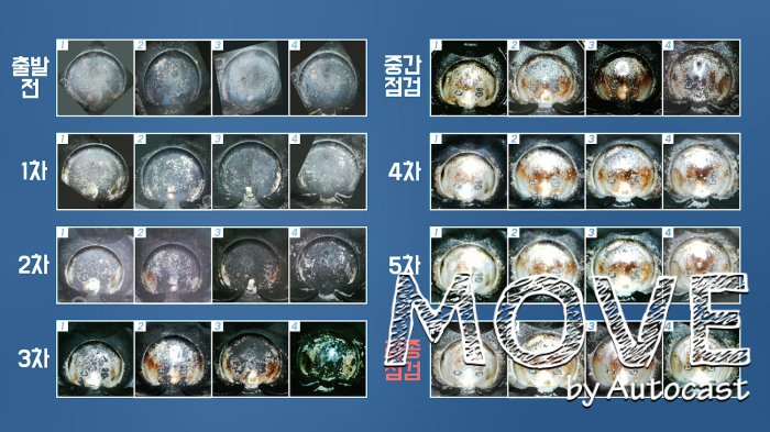 사전 내시경 점검 결과 두 차량 모두 엔진 내 피스톤 상부에 검게 쌓인 엔진 때를 확인했다. 약 120km를 주행한 1차 점검까지는 두 차량 모두 큰 변화가 없었다. 200km를 넘어선 2차 점검에서 불스원샷 주입차량의 피스톤 상부 타각이 보이기 시작했다. 약 330km를 주행한 3차 점검에서는 불스원샷 주입차량의 엔진 때가 상당 부분 제거된 것을 육안으로 확인할 수 있다.