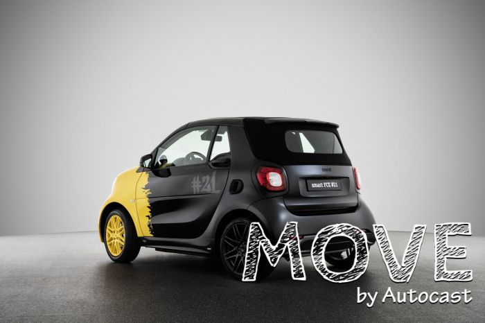 외장 색상은 첫 번째 스마트의 모습을 연상케 하며 브릴리언트 옐로우가 차량의 앞쪽에 그리고 뒤쪽에 매트 블랙의 색상이 적용되었다. 도어와 휠 센터캡에는 #21이라는 그래픽이 적용되어 있다.