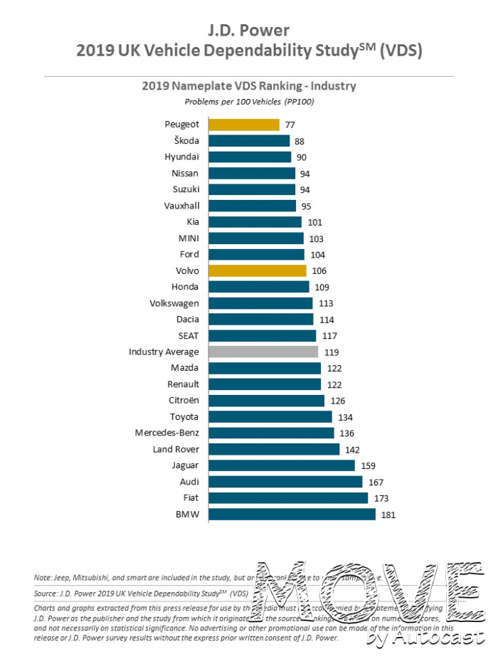 마크 렌드리치(Mark Lendrich) 유럽 J.D 파워 책임 연구자는 "장기적인 신뢰성은 오늘날의 판매와 미래의 브랜드 충성도에 직접적인 영향을 미친다"며, "푸조는 현 소비자들의 니즈를 이해하는 데에 큰 도움이 되었으므로 영국에서 가장 신뢰 할 수 있는 브랜드 및 모델로서 수상 할 자격이 충분하다"고 밝혔다.