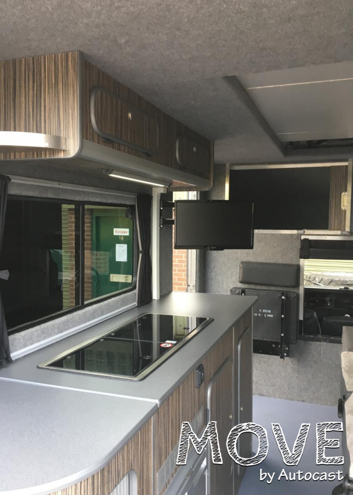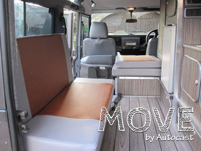캠퍼로 제작된 이 디펜더 모델은 롱휠베이스 모델로 앞쪽 운전석을 제외하고 뒤쪽은 캠핑에 적합한 도구들을 탑재해 모빌홈으로 변경됐다. 한쪽의 내부 공간은 새로운 우드 플로어를 따라 벤치 시트를 탑재했으며 다른 한 쪽은 캐비닛과 스토브, 싱크, 그리고 접이식 테이블을 마련했다. 벤치 시트는 침대로도 활용이 가능하다.