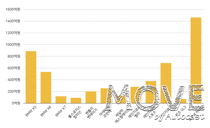 수입차협회의 통계를 기준으로 살펴보면 올 들어 판매한 1억원 이상 SUV는 총 31종, 4140대다. 이 차들의 판매가격을 합친 매출액은 5117억원에 이른다.