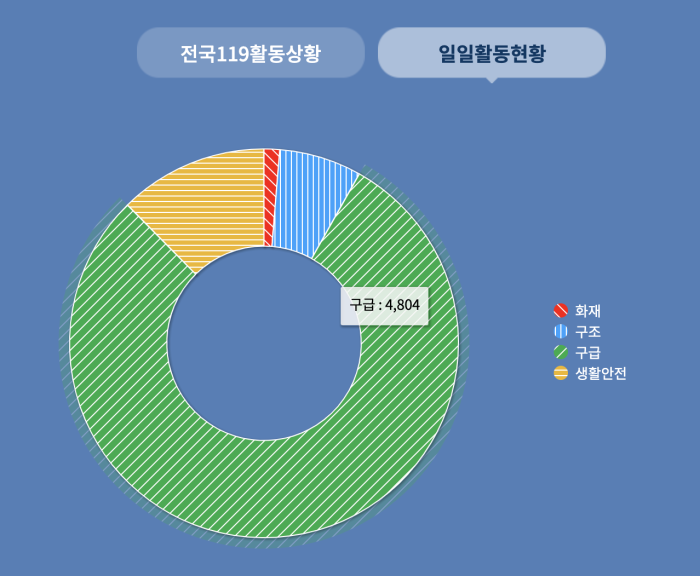 119구급차의 업무는 크게 구조, 구급, 화재 진압 3가지다. 이 중 구급 활동의 비율이 월등히 높다. 2018 소방청 통계연보에 따르면 2017년도 119 구조 활동 출동 건수는 8만 5194건인데 반해 119구급 출동 건수는 278만8101건이다. 소방청 웹사이트에 매일 업데이트되는 일일 활동 현황만 봐도 구급활동 비율이 월등히 높은 것을 한 눈에 알 수 있다.