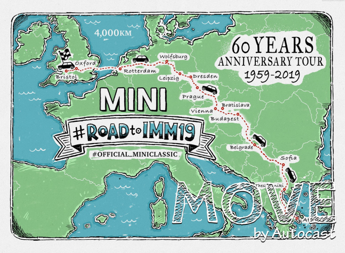이번 로드트립은 그리스 아테네에서 출발해 영국을 종착점으로 설정했다. 알렉 이시고니스의 클래식 미니에 대한 경의의 표현된 모델이 만들어졌다.