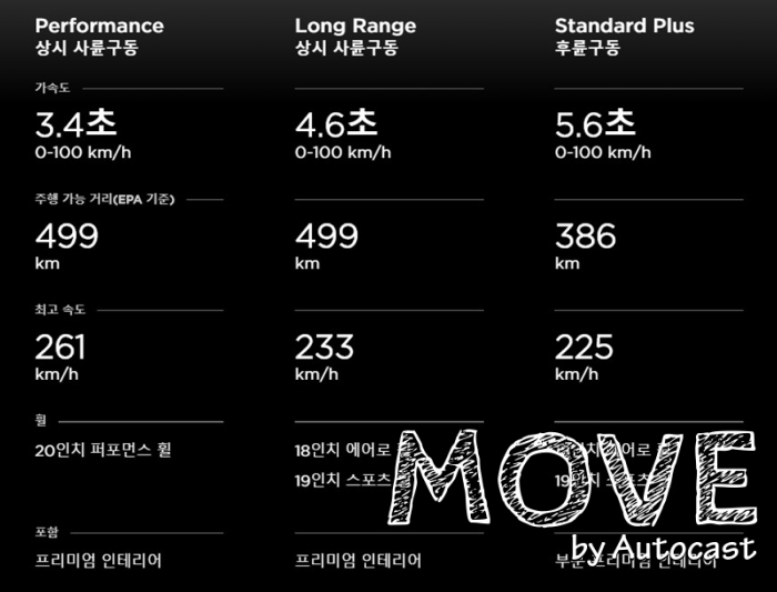 다만 많은 소비자들이 주목하는 것은 수치로 표현하는 성능이다. 특히, 정지상태에서 시속 100km/h에 이르는 소위 ‘제로백’이 인상적이다. 뒷바퀴 굴림 방식의 기본 모델 ‘스탠다드 플러스’가 5.6초다. 2017년 기아자동차의 스팅어 3.3 트윈 터보가 제로백 5.1초로 등장하면서 5000만원대 고성능 자동차라고 불린 것과 비교하면 인상적이다. 테슬라 모델3의 상시 사륜구동 모델 ‘롱 레인지’는 제로백 4.6초. 상시 사륜구동 모델의 ‘퍼포먼스’는 무려 제로백 3.4초다. 사실상 지금까지 제로백 3초대의 자동차는 슈퍼카 혹은 하이퍼카의 영역이었다. 페라리, 마세라티, 포르쉐의 고성능 모델에서 가능한 수치였지만 테슬라 모델3로 경험할 수 있다.
