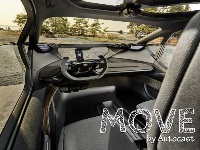 대시보드에는 자체 디스플레이가 없다. 대신 운전자의 스마트폰을 사용하는데, 이 스마트폰은 차량의 기능과 내비게이션 시스템의 디스플레이와 제어 센터로 스티어링 칼럼에 부착되어 있다. AI 내부에 스크린을 담지 않겠다는 의지가 반영된 것이다. 아우디는 트레일을 이용해 더 낮은 대시보드를 만들 수 있었다.
