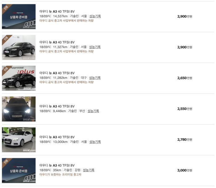 소비자 입장에서는 좋은 기회일 수 있지만 중고차 가격 질서에 혼란을 주기도 한다. 지난해 아우디는 7월 3950만원과 4350만원의 아우디 A3를 각각 40% 할인해 2370만원과 2610만원 정도에 판매했다. 현재 A3 중고차 가격은 이보다 높은 3000만원에도 판매되고 있다. 할인 당시보다 주행거리나 연식이 증가했음에도 중고차 가격은 이를 반영하지 못하고 있는 것.
