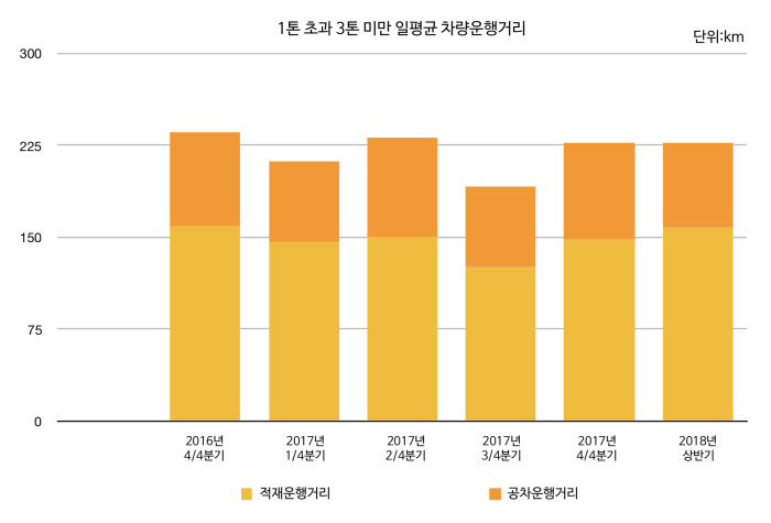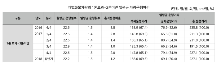 지난 8월 한국교통연구원이 발표한 화물운송시장 동향보고서에 따르면 2018년 상반기 1톤 초과 3톤 미만 화물차량의 일평균 총 주행거리는 227.1km다. 이 가운데 적재운행거리는 158.0km, 공차운행거리는 69.1km다. 하지만 업계에서 개발하는 1톤 트럭급 포터EV와 2.5톤급 마이티 EV는 예상 주행거리가 1회 충전으로 200km에 불과해 실용성에 의문이 제기됐다.