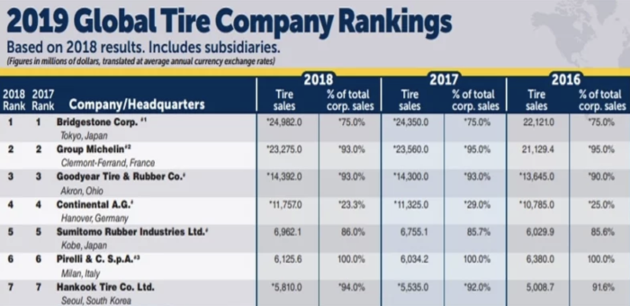업계 관계자들은 전세계 자동차 산업의 침체가 타이어 업계로 고스란히 이어지고 있다고 분석하고 있다. 여기에 낮은 인건비와 제조단가로 공세를 펼치는 중국 등 아시아 타이어 제조사 등의 성장으로 주류 타이어 제조사와의 경쟁은 더욱 치열해지고 있다.