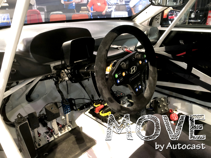 퍼포먼스 부품을 달아 공격적인 모습으로 꾸민 벨로스터 N 퍼포먼스 카도 전시했다벨로스터 N 레이싱카도   전시했다커다란 화면에는 지난달 11 미쉐린 레이스웨이 로드 애틀랜타에서 열린 ‘2019 미쉐린 파일럿 첼린지’ TCR 클래스에서 우승을 차지한 벨로스터 N TCR 머신을 선보였다.