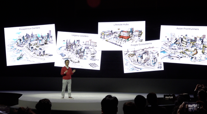 현대자동차는 운송수단의 미래 청사진을 제시했다. 자율주행 자동차가 도심을 돌아다니고 허브에 와서 연결된다. 연결 즉시 사람이 내려서 활동을 시작한다. 허브는 영화관, 병원, 카페를 포함해 무엇이든 될 수 있다. 옥상에는 개인용 비행체가 이착륙한다. 멀리 떨어진 곳으로 이동하려면 비행체를 이용한다. 도착지에서 다시 자율주행 자동차를 탑승하면 된다.