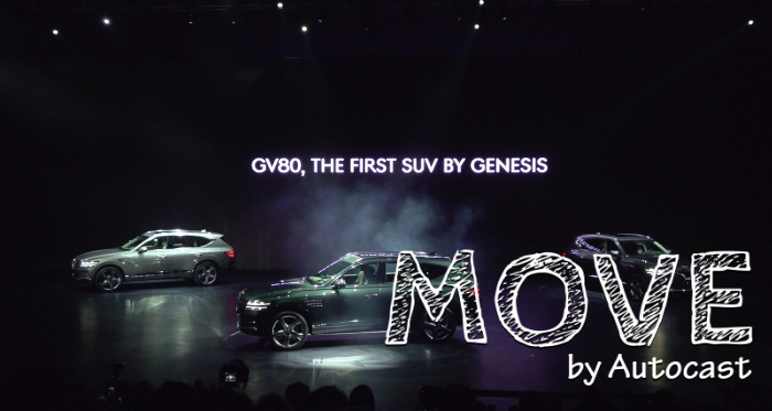 15일 GV80의 신차 발표에서 루크 동커볼케 디자인 담당 부사장은 제네시스의 엠블럼을 차체의 앞면에 형상화한 크레스트 그릴과 쿼드 램프에 대해 설명했다. 동시에 행사장 뒤엔 검게 처리된 배경에 상징적인 쿼드 램프의 주간주행등이 켜져 있는 6대의 각기 다른 제네시스 모델이 등장했다.