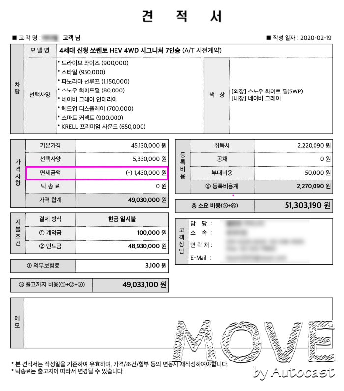 친환경차 혜택이 사라질 경우 신형 쏘렌토 하이브리드는 풀옵션 가격 기준으로 약 143만원 가량의 가격 인상 요인이 생길 것으로 예상된다. 오토캐스트가 확인한 신형 쏘렌토 하이브리드 풀옵션 모델의 경우 차량가격이 4903만원이었지만 143만원이 추가되면 5046만원이 된다.