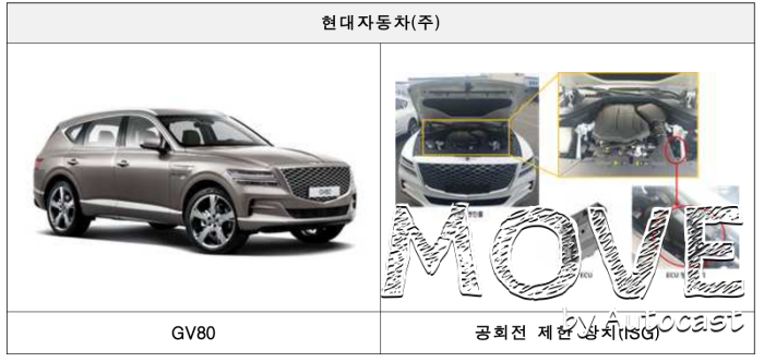 27일 국토부에 따르면 제네시스 GV80 823대는 Stop&Go 장치(브레이크를 밟아 멈추면 자동으로 시동이 꺼지고, 브레이크에서 발을 떼거나 가속페달을 밟으면 다시 시동이 걸려 연비 향상 등을 위한 장치)의 소프트웨어 오류로 변속이 정상적으로 되지 않을 가능성이 확인됐다. 해당 차량은 27일부터 현대차 직영서비스센터 및 블루핸즈에서 무상으로 수리를 진행한다.