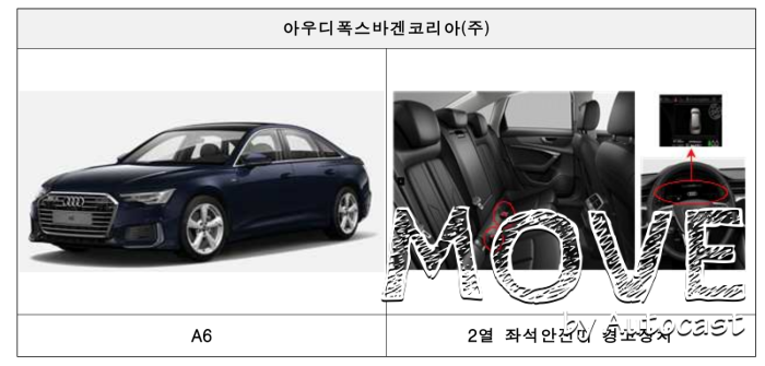 아우디 A6 40 TDI 등 11개 차종 1만764대와 한불모터스에서 수입, 판매한 DS3 Crossback 1.5 Blue HDi 78대는 2열 좌석안전띠 경고장치가 자동차 안전기준에 부적합한 것으로 나타났다.