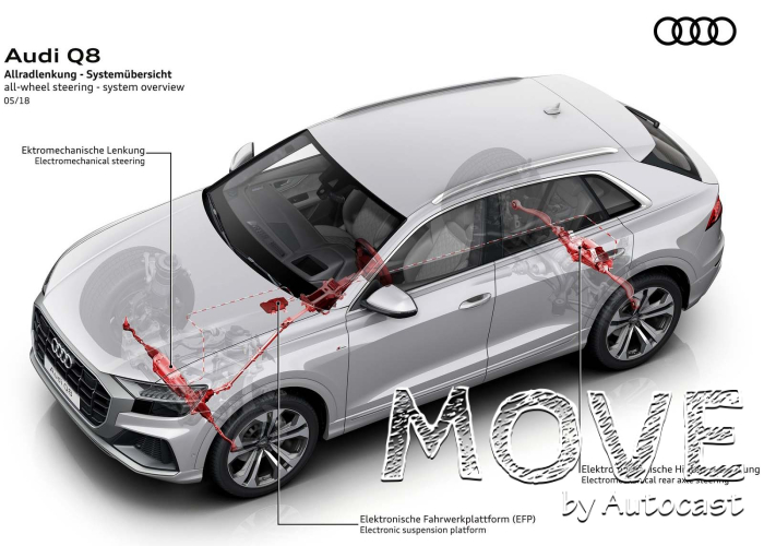 신형 Q8에는 아우디의 사륜 조향 시스템인 ‘다이내믹 올 휠 스티어링(Dynamic all-wheel steering)‘을 적용해 최적의 핸들링 성능도 갖췄다. 동시에 혁신적인 차체 경량 구조 기술을 통해 차량의 전체 중량은 감소하면서도 우수한 강성을 확보해 뛰어난 주행 안전성과 연비 향상에 기여한다.