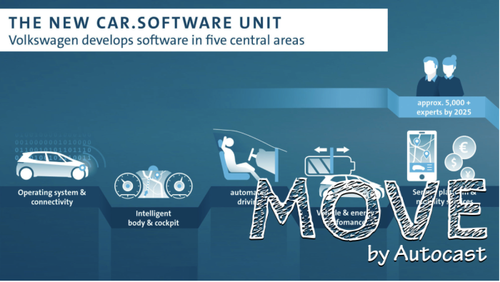 폭스바겐그룹은 새로운 조직의 인력확충을 위해 승용차 브랜드의 디지털 자동화 및 서비스 부서는 '카.소프트웨어' 조직으로 이관하거나 회사의 타 부서를 보강하는 등 핵심 브랜드로 통합해 운영한다.