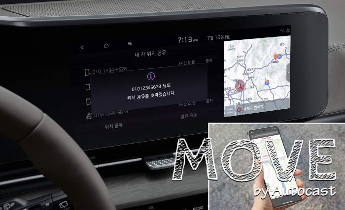 '내 차 위치 공유' 기능도 적용한다. 이 기능은 목적지로 이동 시 현재 차량 위치를 가족, 지인, 차량 등 공유 대상에게 전송하는 기능으로 목적지까지 남은 시간, 거리, 운행 속도 등의 정보를 공유한다.