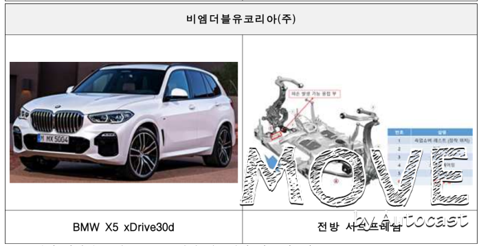 BMW X5 xDrive30d 등 11개 차종 69대는 서브 프레임 제작공정 중 일부분의 용접이 제대로 되지 않아 용접부가 균열되고, 이로 인해 차체와 바퀴를 연결하는 부품이 분리돼 안전운행에 지장을 줄 가능성이 확인돼 리콜에 들어간다. 해당 차량은 12월 4일부터 BMW코리아 공식 서비스센터에서 무상으로 수리를 진행하고 있다.