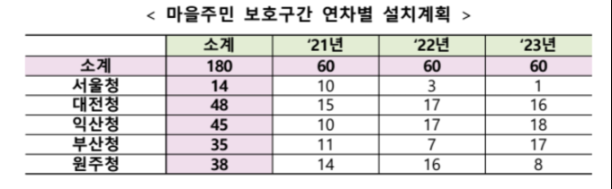 이에 따라 체계적인 사업 추진을 위해 「마을주민 보호구간 1단계(’19~‘20) 기본계획」을 수립해 152곳을 개선했으며 1단계 계획에 이어 이번에 2단계(’21~‘23) 기본계획을 수립했다.
