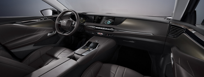 실내 디자인은 크게 인비저블 송풍구 ‘DS 에어(DS AIR)’와 조작 버튼이 놓인 수평형 대시보드, 송풍구와 이어진 전동식 윈도우 버튼이 내장된 좌우 도어, 각종 첨단 인터페이스 기술을 탑재한 센터페시아 세 부분으로 나뉜다. 센터페시아에는 10인치 디스플레이에 표시되는 기능들을 음성 및 동작으로 조작할 수 있는 ‘DS 아이리스 시스템’, 센터콘솔에 위치한 5인치 터치 패드에 명령어를 기입하거나 간단한 손동작을 통해 차량 내 기본 설정을 조작할 수 있는 ‘DS 스마트 터치’, 작은 컨트롤 스위치 모양의 8단 자동 변속기 ‘E-토글’ 등을 탑재했다. 여기에 주행 중 필요한 정보를 증강현실 기술을 활용해 21인치 반사판에 투사하는 ‘DS 익스텐디드 헤드업 디스플레이’도 적용했다.