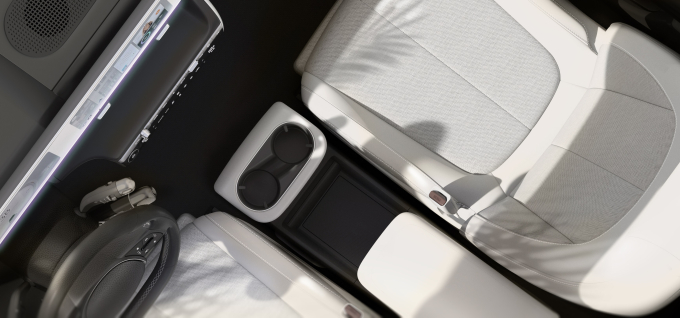 내연 기관차의 구조적 한계였던 실내 터널부를 없앤 플랫 플로어, 앞뒤로 움직일 수 있는 콘솔인 ‘유니버셜 아일랜드’,  슬림해진 콕핏(운전석의 대시보드 부품 모듈), 스티어링 휠 주변으로 배치한 전자식 변속 레버를 적용했다. 이와 함께 다리받침이 포함된 1열 운전석∙동승석 릴렉션 컴포트 시트는 등받이와 쿠션 각도 조절이 가능하다.