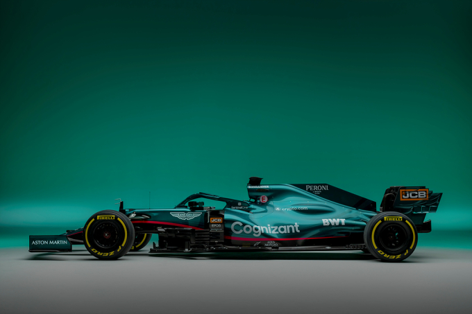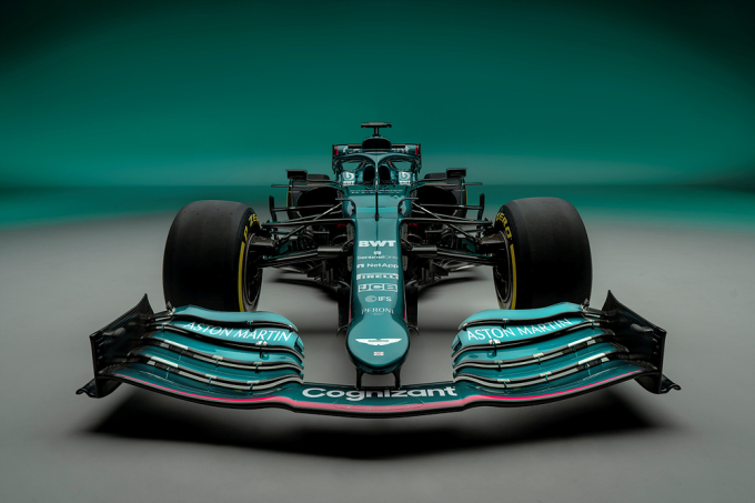 애스터마틴 F1 레이싱팀은 미국의 IT기업인 코그니전트(Cognizant)를 타이틀 스폰서로 맺었다. 팀 리버리는 고유의 브리티시 레이싱 그린을 기반으로 측면 하단에 파트너인 BWT의 상징이자 밝은 자주색을 뜻하는 마젠타 색상 스트라이프가 새겨진다.