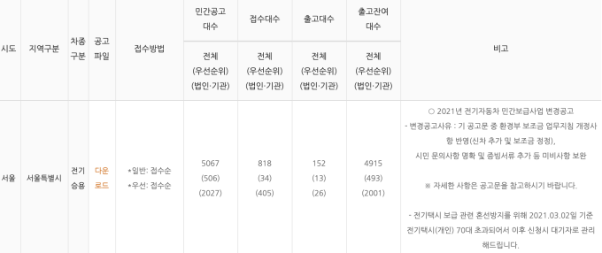 물론 아이오닉5는 아직 정식으로 출고를 시작하지 않아 보조금 지원 차종에 없다. 보조금 지급 대상으로 선정이 되면 2개월 이내 차량을 등록하고 보조금을 받으면 된다.