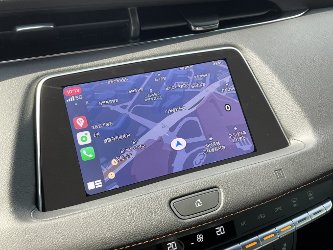 차량 내에서 자주 쓰는 기능은 디스플레이 아래쪽에 버튼으로 빠져 있어 사용성이 편리하다. 특히 애플카플레이와 안드로이드오토가 무선으로 연결돼 편리하고, 깔끔하게 사용 가능하다. 캐딜락 차량의 특징 중 하나인 카메라 미러는 XT4에도 들어갔다. 첫 사용 시에는 거울로 보는 것보다 시야가 넓어 어색하지만, 익숙해지면 오히려 유용하다. 화질이나 시야 모두 만족스러운 편이다. 미러 아래 달린 레버를 조작해 거울과 카메라를 선택해서 사용할 수 있다. 카메라 모드일 경우 버튼을 이용해 화면 축소 및 확대, 크기 및 밝기 조정이 가능하다.