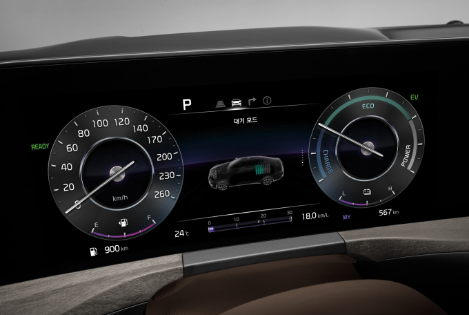이와 함께 효율 높인 구동모터와 12V 보조배터리 통합형 고전압 배터리 적용으로 복합연비는 이전대비 약 11% 높아진 18.0km/ℓ다.(17인치 휠 기준)