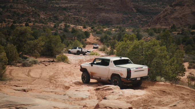 이번 영상에서는 네 대의 프로토타입 허머 EV가 등장했으며 험로에서의 전륜과 후륜의 꺾임 각을 동일하게 해 차량의 대각선 주행을 가능하게 하는 ‘크랩워크(Crab Walk)’ 기능과 사륜 스티어링 시스템, 서스펜션 높이를 약 6인치 들어올리는 ‘엑스트랙트 모드(Extract Mode)’ 등 오프로드 사양에 대한 테스트가 이뤄졌다.