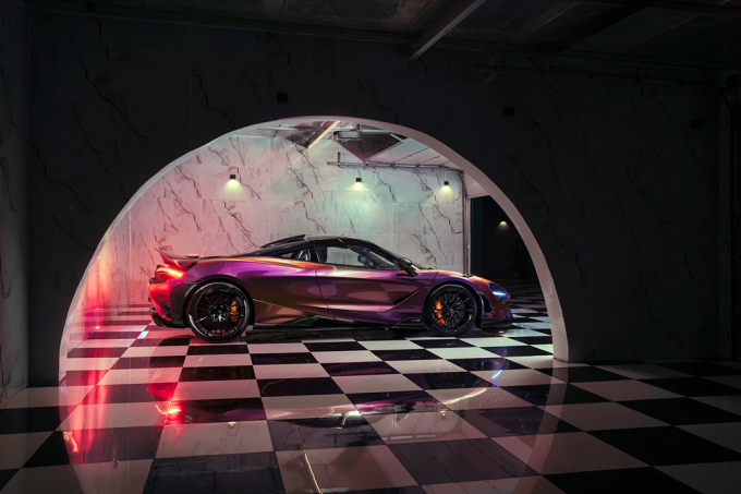 신차는 프론트 스플리터, 리어 범프, 사이드 스커트, 미러 케이스 및 공기 흡입구에 카본 파이버를 적용했다. 여기에 MSO가 설계한 루프 스쿱과 글로스 블랙 피니시의 10 스포크 초경량 휠, 맥라렌 오렌지 브레이크 캘리퍼로 완성도를 높였다. 특히 MSO 케르베로스 펄(Cerberus Pearl) 페인트를 활용해 파랑, 보라, 주황 색상이 조화를 이루는 외관을 완성했다.