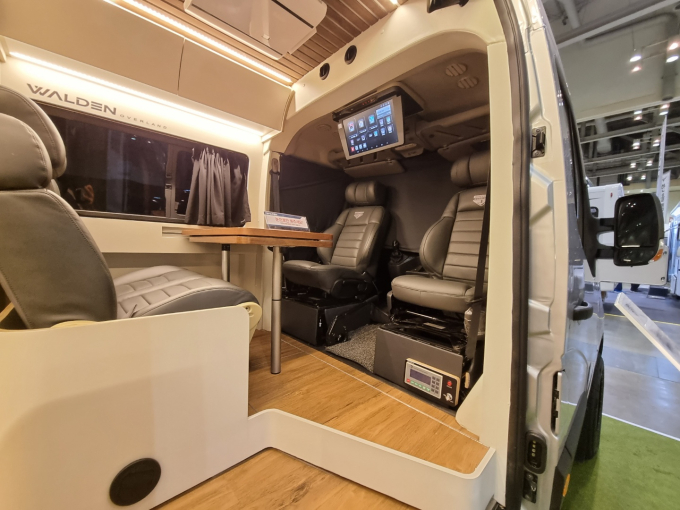 ‘월든 오버랜드’는 르노 마스터 15인승을 베이스로 제작했다. 기존 3인 시트만 장착한 타 모델과 달리 4인승 회전 시트를 장착한 것이 특징이다. 특히 후면부에 일체형 사다리를 적용해 루프랙 위에 다양한 장비를 수납할 수 있다. 실내에는 전동식 확장 침대와 무빙 씽크대 등을 탑재했다. 가격은 개별 소비세 포함 8900만원이다.