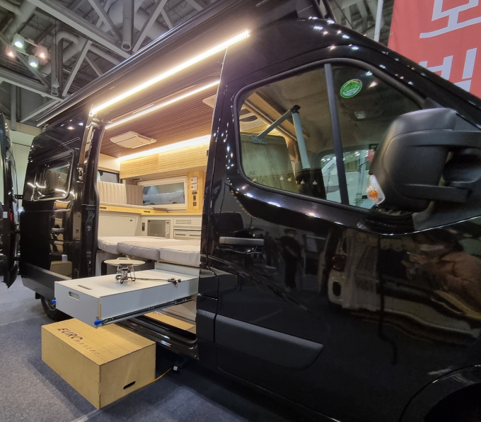 ‘은하모빌’이 이날 공개한 5인승 르노 마스터는 1층과 2층에 나눠 총 5명이 취침할 수 있다. 해당 침대는 가변형으로 쇼파로도 사용이 가능하다. 여기에 전자레인지와 냉장고, 인덕션 등 조리시설을 완비하고 수납이 가능한 야외 조리대로 캠핑 편의성을 높였다. 여기에 바닥난방은 물론 공기 히터, 온수까지 난방시설도 완비했다. 가격은 6570만원이다.(세금 별도)