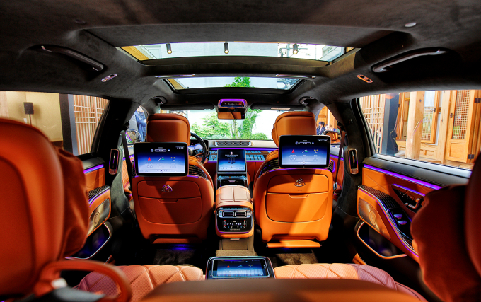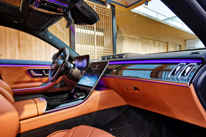 실내에는 중앙에 12.8인치 OLED 디스플레이와 3D 계기반을 포함해 총 5개의 디스플레이 스크린을 탑재했다. 나파가죽으로 마감한 시트에는 익스클루시브 패키지를 기본 적용했다. 또 더 뉴 S-클래스 롱휠베이스 모델보다 18cm 긴 휠베이스로 넉넉한 공간을 확보했으며 무릎공간도 최대 12cm 더 늘렸다.