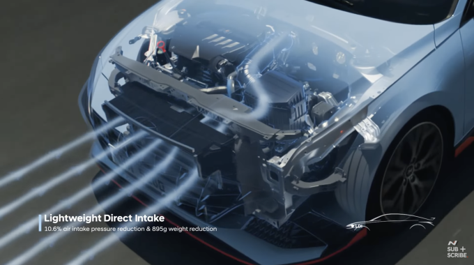 9. NPS: N Power Shift DCT, 업쉬프트 시 엔진 토크를 최대화해 가속 성능을 향상 (0-62mph / 0-100kph에서 -0.2s)한다. 또한 업쉬프트 시 푸쉬 필(Push-feel)을 제공하며 시퀀셜 기어를 사용하는 경주차의 감성적인 변속감을 제공한다.