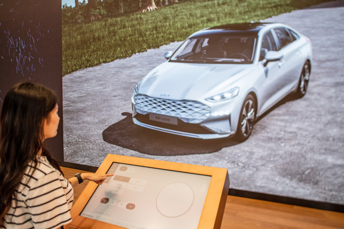 ‘디지털 컬러 컬렉션(Digital Color Collection)’도 마련했다. 디지털 컬러 컬렉션 내 설치된 40개의 태블릿 PC에는 카드 플립 형식으로 기아의 모든 외장 컬러를 확인할 수 있으며 컬러 선택 시 해당 컬러를 구비한 차량 리스트 및 차량 제원 등을 볼 수 있다.