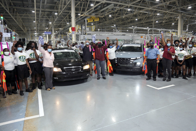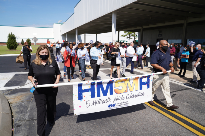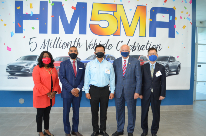 현대차는 12일(현지 시각) 미국 앨라배마주 몽고메리에 위치한 미국 공장에서 조 보너 앨라배마 주지사 수석보좌관, 테리 스웰 앨라배마주 하원의원, 스티븐 리드 몽고메리 시장 등 정부 관계자와 김의성 법인장 등 임직원이 참석한 가운데 500만 대 생산 달성 기념식을 가졌다.