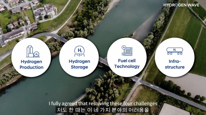 A. 정의선 회장: 전세계에 에너지 전환이 이뤄지고 있다. 화석 연료에서 신재생 에너지로 전환되고 있다. 이를 가속화하기 위해 재생에너지의 저장 등 여러가지 제약을 극복해야하는데 수소가 실용적인 해결책이 될 수 있다고 판단, 오랜 시간 수소를 밀었다.