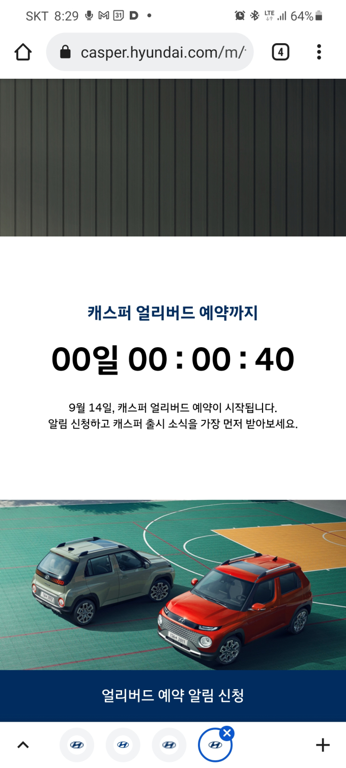 캐스퍼는 온라인 채널을 통해서만 구매가 가능하다. 특히 얼리버드 예약은 캐스퍼 온라인 페이지를 통해서 진행한다. 이에 현대차는 지난 1일부터 캐스퍼 얼리버드 예약 알림 신청 이벤트를 진행했다. 해당 이벤트 참여자는 13일 만에 13만6000명, 온라인 접속자는 70만 명에 달했다. 이에 얼리버드 페이지는 사전예약을 시작한 8시 30분부터 접속이 불가했다. 현재 인터넷 접속은 가능하나 모바일은 불가능한 상태다.