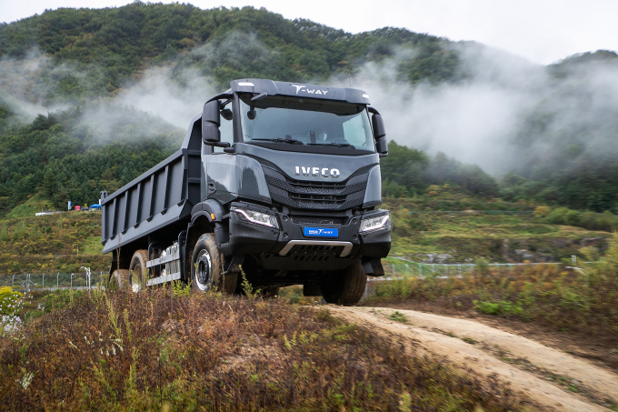 건설용 덤프트럭 T-WAY는 이베코의 대형 상용차 포트폴리오를 완성하는 모델로 국내 수입 덤프 차종 중 유일하게 15톤 적재중량을 제공하는 트래커를 계승했다. 국내 시장에서는 410마력 6x4 로우 루프 트림을 먼저 출시하고 향후 시장 상황에 따라 라인업을 확장해 나갈 계획이다.