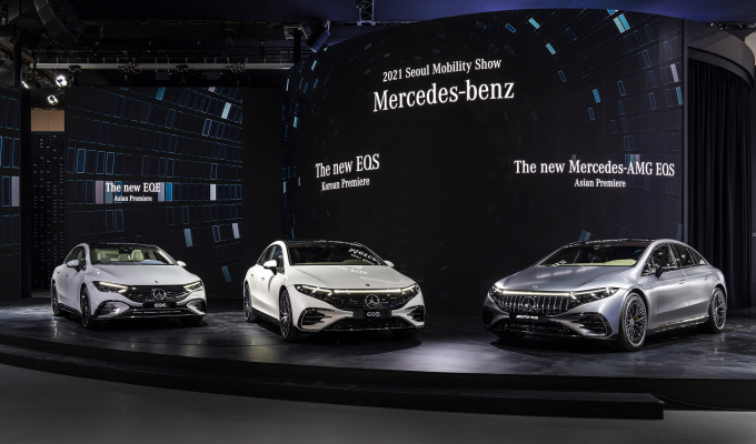 한편 전기 세단인 ‘더 뉴 EQS’는 이번 전시회를 통해 국내 시장에 공식 상륙했다. 신차는 자체 개발한 전기차 전용 모듈형 아키텍처를 적용한 최초의 모델로 각종 디지털 기술과 안전 및 편의 사양을 대거 탑재했다. 국내 시장에는 EQS 450+ AMG 라인 모델을 우선적으로 출시한다.