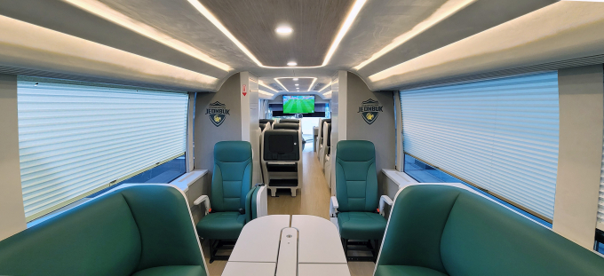[오토캐스트=강명길 기자] 현대자동차가 유니버스 작전지휘차를 공개하고 2021년 K리그 우승 및 사상 첫 5연패를 달성한 전북 현대 모터스 축구팀에 전달했다고 6일 밝혔다. 유니버스 작전지휘차는 현대차의 프리미엄 고속버스인 유니버스를 사무 공간으로 커스터 마이징한 ‘유니버스 모바일 오피스’의 하나로 전북 현대 모터스와 함께 개발했다.