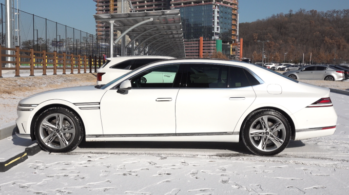 엔진은 회전 질감이 매끄럽고 부드럽다. 특히 소음이 거의 발생하지 않는다. 기함다운 세팅이다. 5미터가 넘는 거대한 크기지만 코너를 돌아나가거나 유턴을 할 땐 회전 반경이 크게 다가오지 않는다. 뒷바퀴 조향 시스템을 얹은 덕분이다. 저속으로 달릴 때는 뒷바퀴를 앞바퀴와 반대로 조향에 회전 반경을 줄이고, 고속으로 달릴 때는 같은 방향으로 조향해 차체 미끄러짐을 줄이고 승차감을 챙긴다. 이제 뒷바퀴 조향은 5m가 넘는 대형 세단에게 이젠 선택 아닌 필수다.