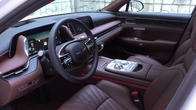 실내는 기함답게 굉장히 고급스럽다. 미래지향적인 디자인을 추구하는 요즘 트렌드를 따라 센터 송풍구 사이에 있던 아날로그 시계를 없앴다. 송풍구가 있는 듯 없는 듯 배치했고 그 아래에는 공조 장치가 그대로 들어간다. 실내에선 도어 손잡이는 보이지 않으며 모두 버튼으로 도어를 열고 닫을 수 있다. 오디오도 달라졌다. 원래 G90에는 렉시콘이 들어갔다. 하지만 이번엔 뱅앤올룹슨을 선택했다. 그리고 세계에선 처음으로 버추얼 베뉴를 적용했다.